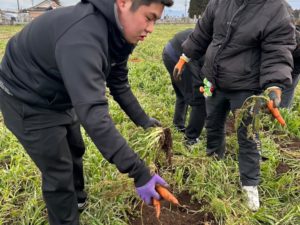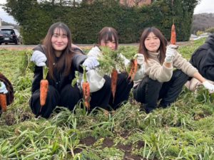 2026年1月7日 2026年初授業✨ シェフ学科 シェフ学科2年生 2026年最初の実習はー 人参の収穫体験🥕✨ あまーい人参の収穫へGO❗️ 採りたてのにんじんを カットして生のまま頂きました🥕 皮付きでもくさみもなく 甘くて美味しいんですよ✨ 料理人として自分が使う食材が どのように作られているのか、 どのような料理に適しているかなど 実際に体験して学ぶことができました!🙌
