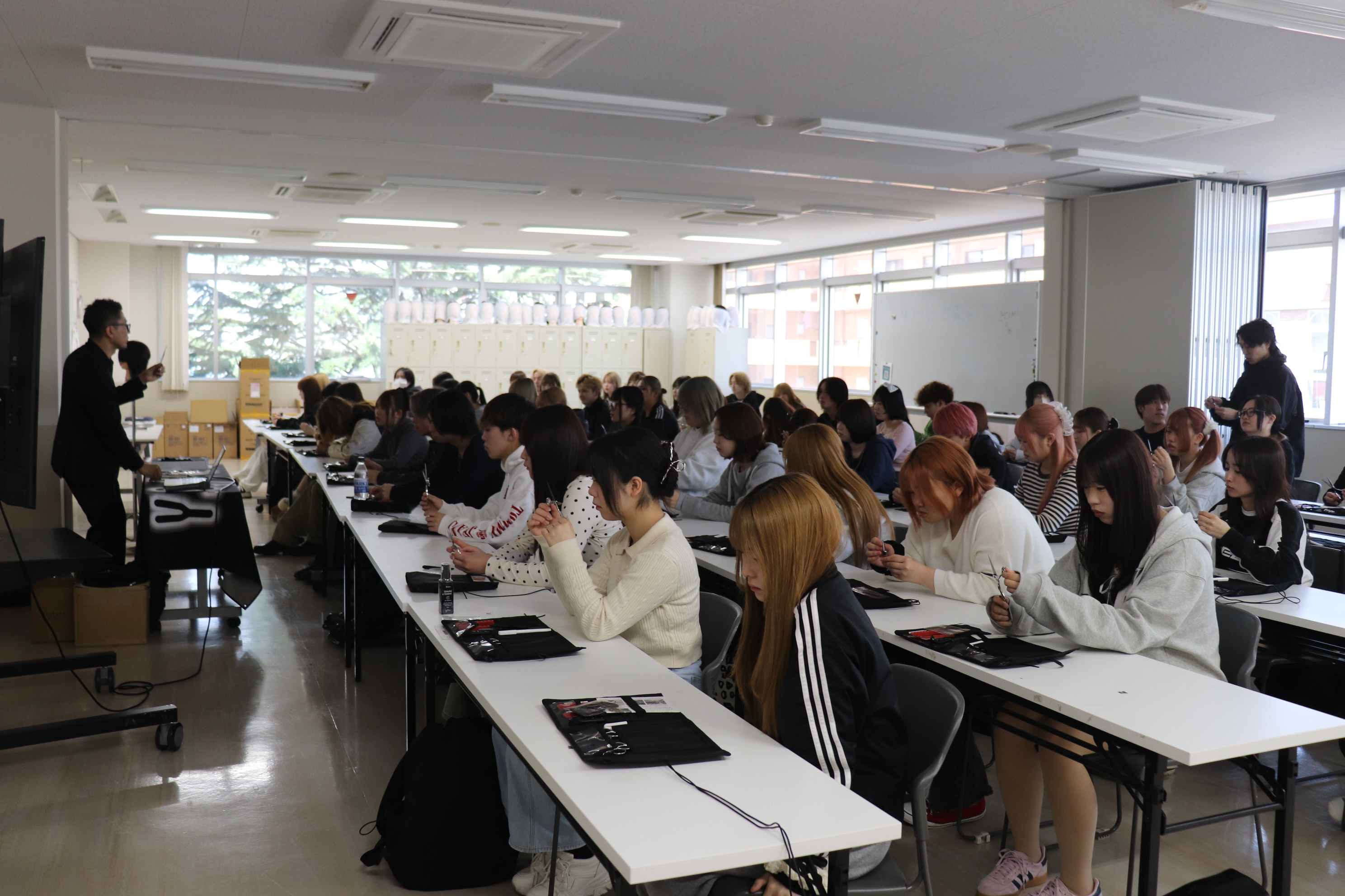 美容学科とヘアメイク学科の1年生が