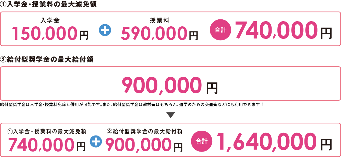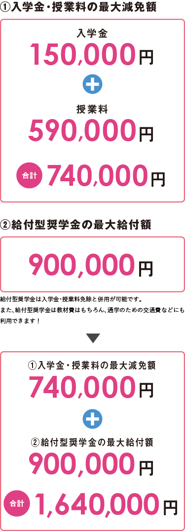 入学金・授業料の免除または減額